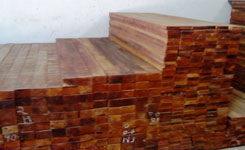 Description: The heartwood is yellowish to orange brown when newly cut, but matures to brown or dark red-brown; there can be moderate to high colour variation. The grain can be straight, wavy or interlocked, and may form a ribbon figure on radial surfaces; Merbau has a moderately coarse but even texture with an oily fell to it. The surface can often be lustrous, but vessel cavities may contain yellow deposits that can dye cloth. The sapwood is clearly demarcated from the heartwood and is whitish-grey to yellowish-brown. It is moderately heavy and hard, with medium stiffness, bending strength and resistance to shock loads.